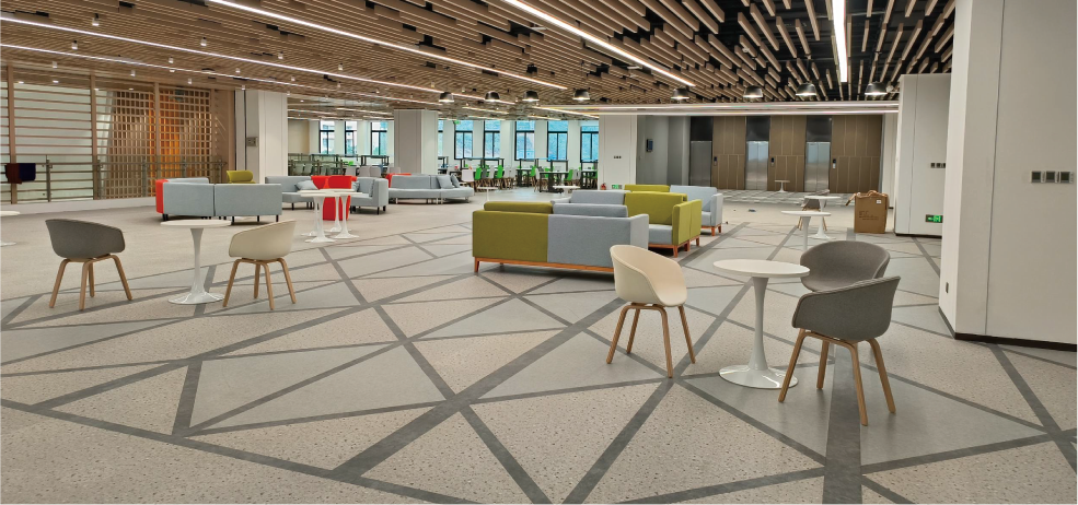 This is a university library ground installation project. The assembly plan for the ground was designedby a senior designer from Rococo, using existing products to achieve zero consumables. The overalleffect is very beautiful and the customer is very satisfied.